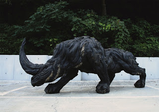 В своей работе корейский скульптор Ен Хо Чи (Yong Ho Ji) освоил довольно нестандартный для создания скульптур материал. Арт-объекты скульптор изготавливает из шин. С точностью хирурга, на подготовленный скелет Ен Хо Чи прикрепляет детали. Задача скульптора не просто одеть каркас, а передать как можно подробнее любые анатомические тонкости каждого отдельного животного. Процесс создания одной скульптуры занимает до трех месяцев.